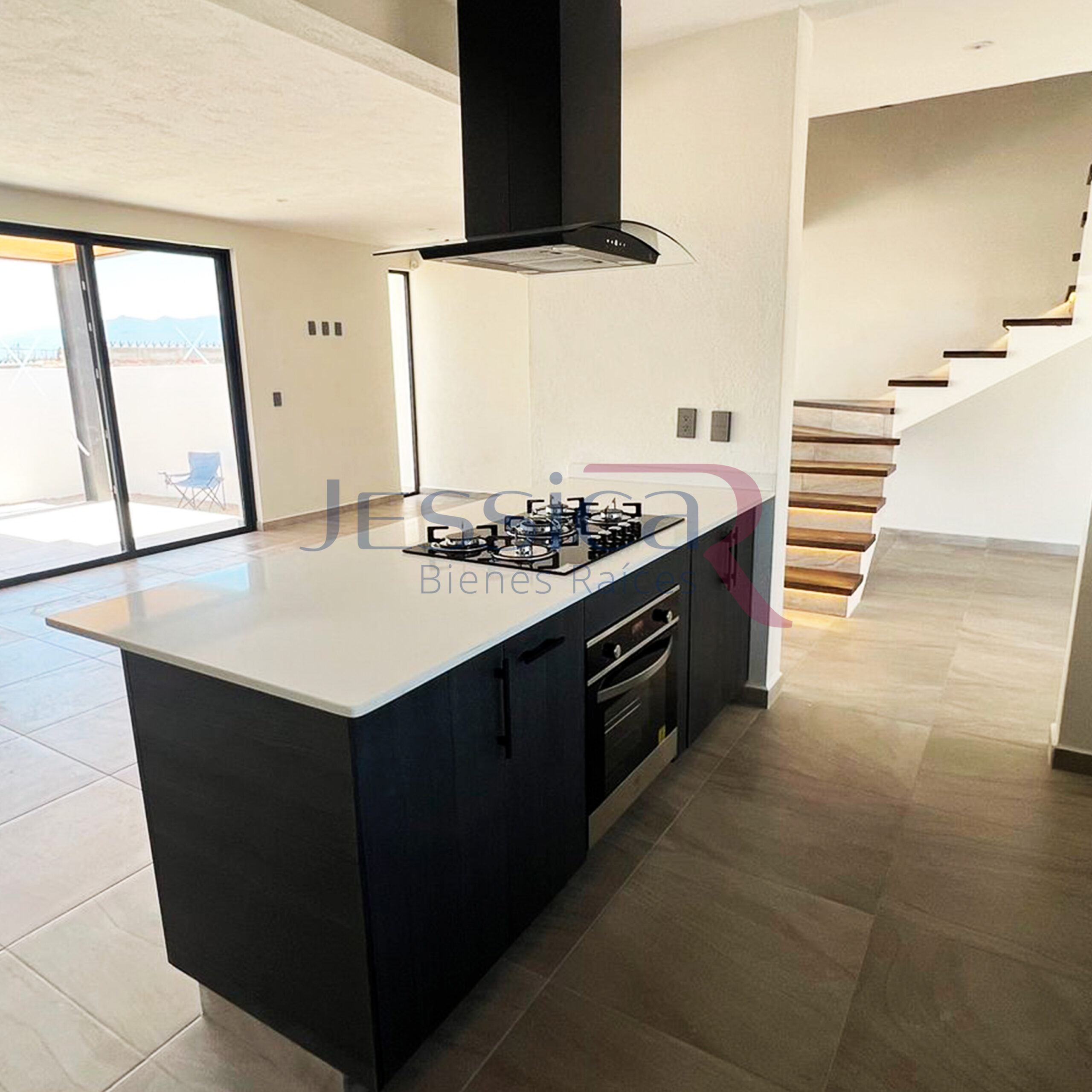 ☑️ Cocina con planchas de cuarzo, campana isla y horno eléctrico, tarja multifuncion